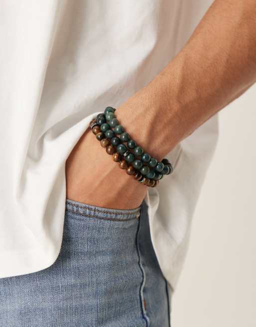 ASOS DESIGN – Zestaw 3 bransoletek festiwalowych z kamieni półszlachetnych w kolorze neutralnym