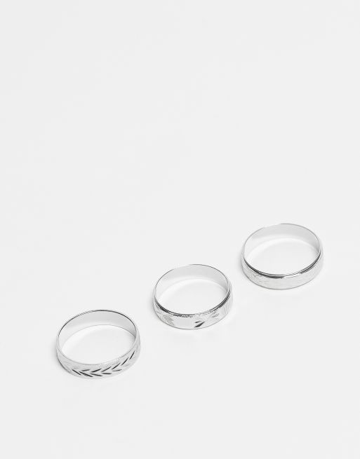 ASOS DESIGN – Zestaw 3 fakturowanych pierścionków w kolorze srebra