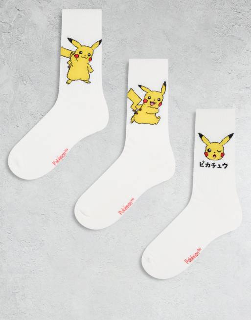 ASOS DESIGN – Zestaw 3 par białych skarpetek z grafiką z pokemonem