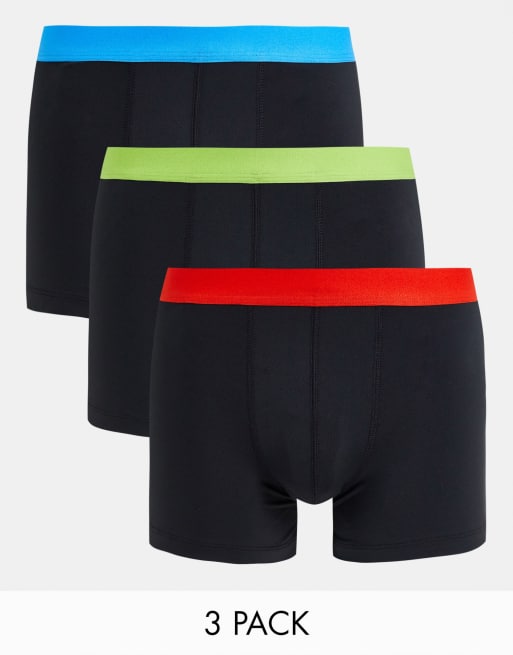 ASOS DESIGN – Zestaw 3 par bokserek z mikrofibry, z kontrastową gumką