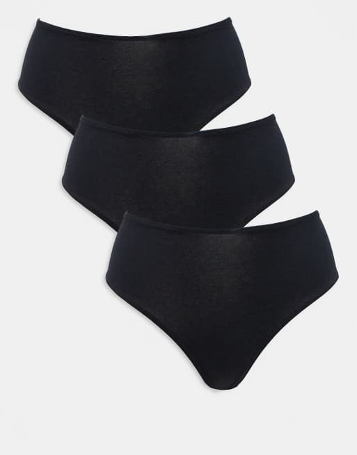 ASOS DESIGN – Zestaw 3 par czarnych bawełnianych fig brazylijskich z podwyższonym stanem