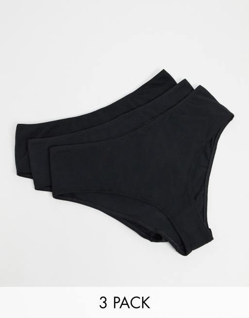 ASOS DESIGN – Zestaw 3 par czarnych bawełnianych fig brazylijskich z podwyższonym stanem