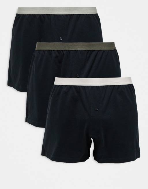 ASOS DESIGN – Zestaw 3 par czarnych bokserek z kolorowymi taśmami w talii