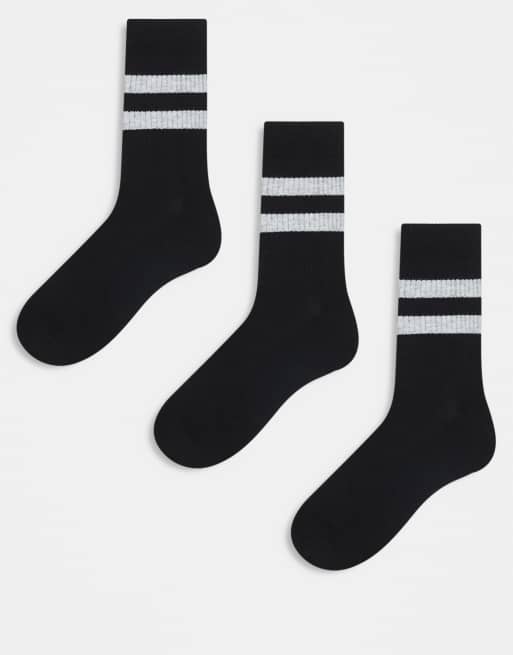 ASOS DESIGN – Zestaw 3 par czarnych skarpetek sportowych z szarymi melanżowymi paskami