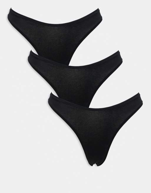 ASOS DESIGN – Zestaw 3 par czarnych stringów z bawełny