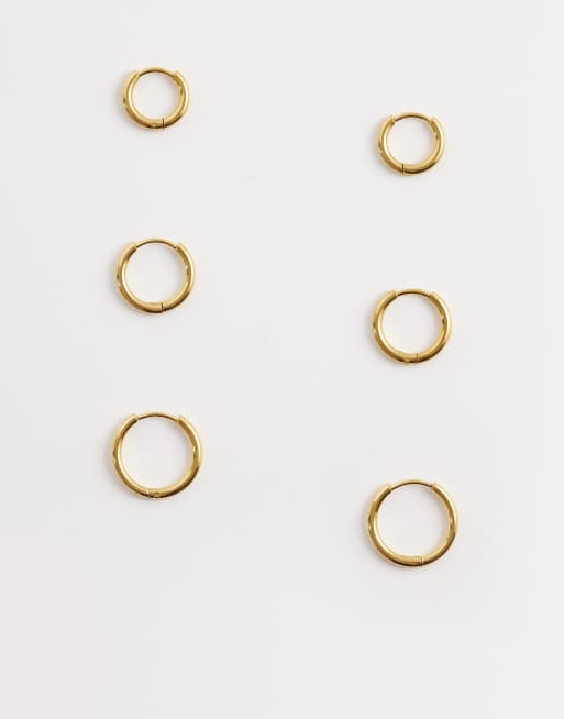 ASOS DESIGN – Zestaw 3 par kolczyków-kół ze stali nierdzewnej w odcieniu złota w różnych rozmiarach