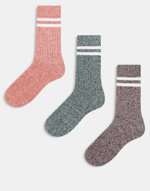 ASOS DESIGN – Zestaw 3 par melanżowych skarpetek w różnych kolorach z nadrukiem pasków