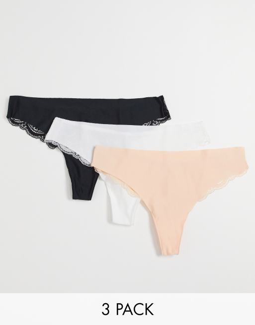 ASOS DESIGN – Zestaw 3 par niewidocznych pod ubraniem stringów koronkowych w różnych kolorach