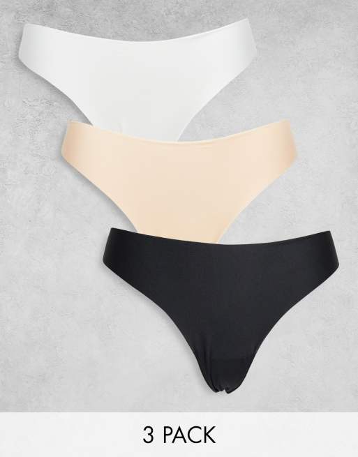 ASOS DESIGN – Zestaw 3 par niewidocznych stringów koronkowych w kolorach białym, beżowym i czarnym