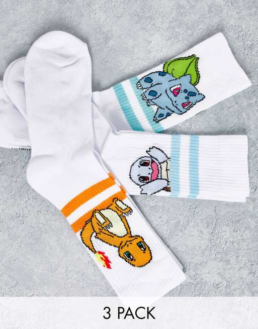 ASOS DESIGN – Zestaw 3 par skarpetek sportowych z paskami i motywem Pokemonów