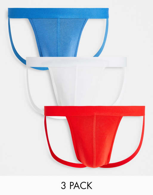 ASOS DESIGN – Zestaw 3 par slipów typu jock strap w kolorach podstawowych