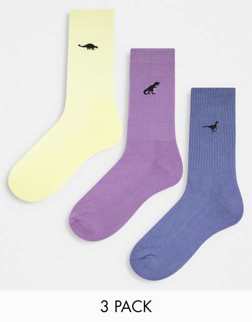 ASOS DESIGN – Zestaw 3 par sportowych skarpetek z haftowanym dinozaurem