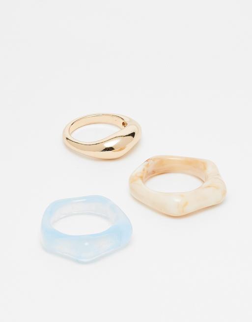 ASOS DESIGN – Zestaw 3 pierścionków z różnych tworzyw i w kolorze złotym