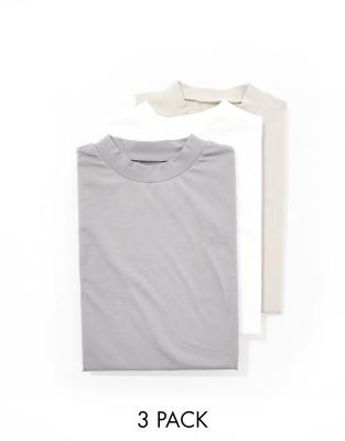 ASOS DESIGN – Zestaw 3 T-shirtów oversize z zabudowanym dekoltem w różnych kolorach