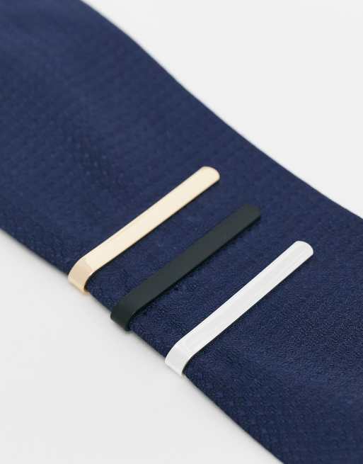 ASOS DESIGN – Zestaw 3 wąskich spinek do krawata w odcieniu srebrnym, złotym i matowym czarnym
