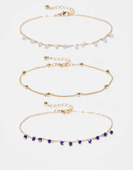ASOS DESIGN – Zestaw 3 bransoletek na kostkę w kolorze złota z koralikami