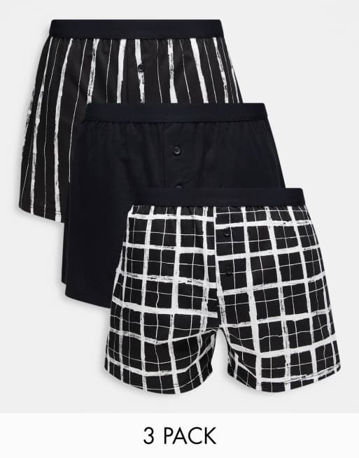 ASOS DESIGN – Zestaw 3 par czarnych dżersejowych bokserek w kratę i w paski