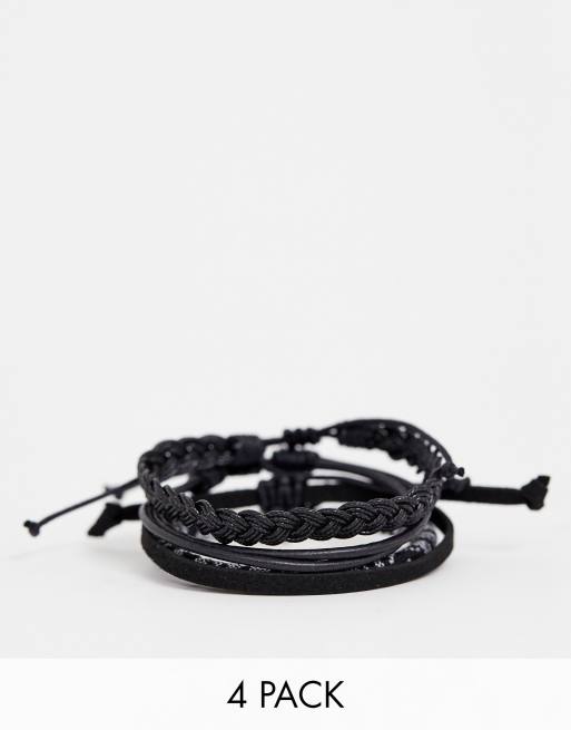 ASOS DESIGN – Zestaw 4 czarno-białych bransoletek ze skóry i tkaniny