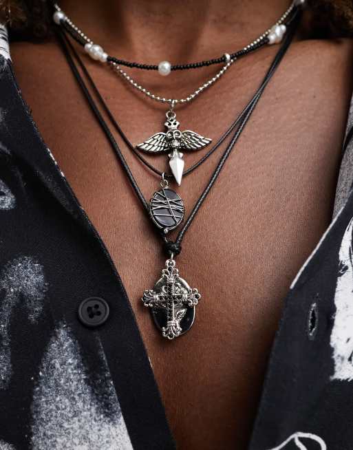 ASOS DESIGN – Zestaw 4 naszyjników łańcuszkowych i sznurkowych w kolorze srebrnym