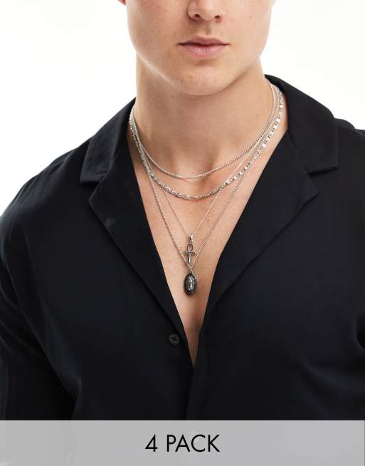 ASOS DESIGN – Zestaw 4 naszyjników z zawieszką w kolorze srebra
