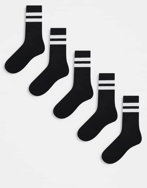 ASOS DESIGN – Zestaw 5 par czarnych sportowych skarpetek z białym paskiem