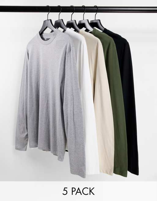 ASOS DESIGN – Zestaw 5 par kolorowych T-shirtów z długimi rękawami – MULTI