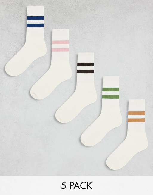 ASOS DESIGN – Zestaw 5 par skarpetek w kolorze ecru z kolorowymi paskami