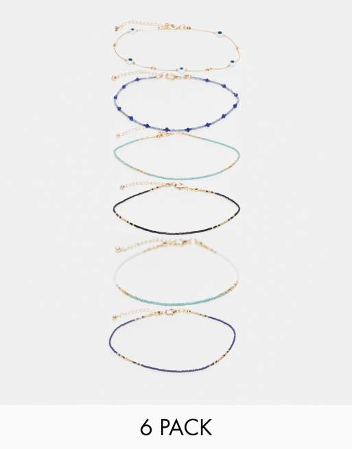 ASOS DESIGN – Zestaw 6 bransoletek na kostkę z koralikami i oczkami