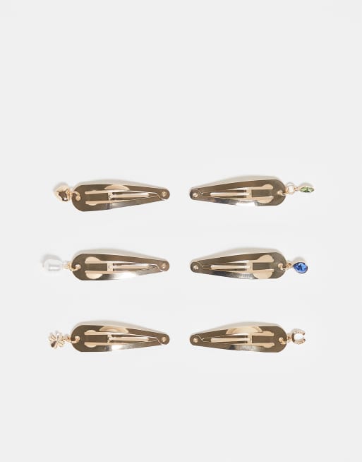 ASOS DESIGN – Zestaw 6 spinek do włosów z przywieszkami w złotym kolorze