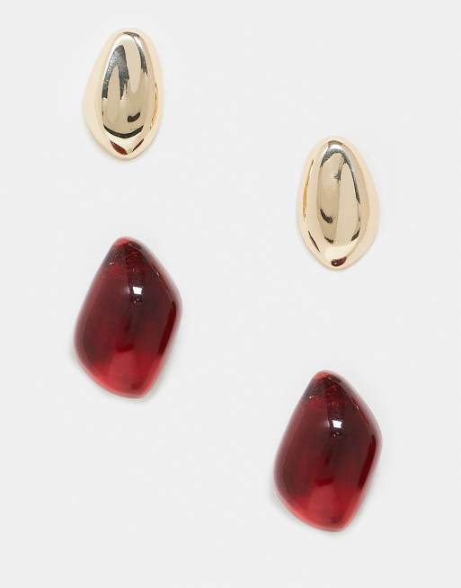 ASOS DESIGN – Zestaw kolczyków wkrętek z efektem stopienia w odcieniu złota i bordowym
