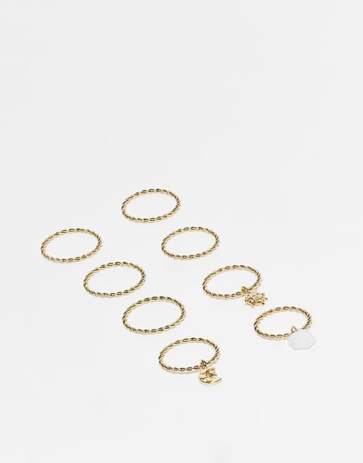ASOS DESIGN – Zestaw pierścionków w złotym kolorze z zawieszkami
