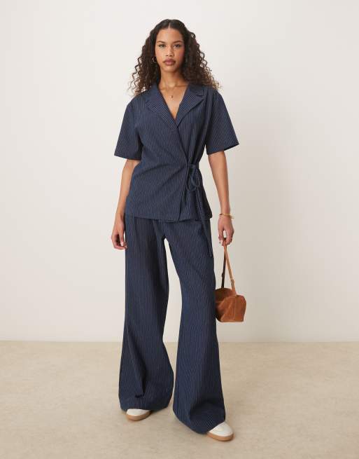 ASOS DESIGN – Zestaw z imitacji jeansu: spodnie z szerokimi nogawkami i kamizelka