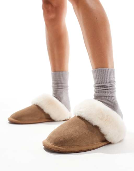 ASOS DESIGN – Zeus Premium – Jasnobrązowe kapcie z owczej skóry