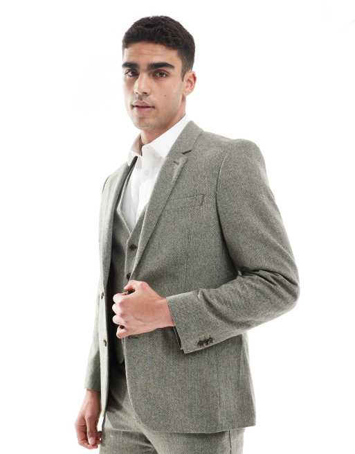 ASOS DESIGN – Zielona dopasowana marynarka garniturowa z dużą zawartością wełny w jodełkę