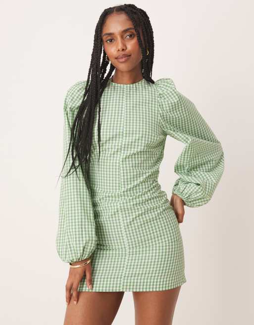 ASOS DESIGN – Zielona dopasowana sukienka mini w kratkę vichy z wiązaniem na plecach