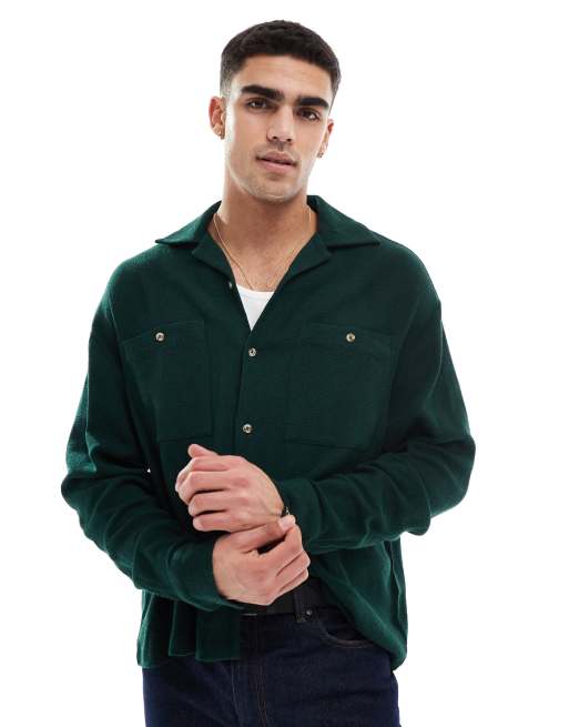 ASOS DESIGN – Zielona fakturowana koszula o pudełkowym kroju oversize
