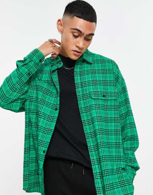 ASOS DESIGN – Zielona koszula extreme oversize o pudełkowym kroju w kratę