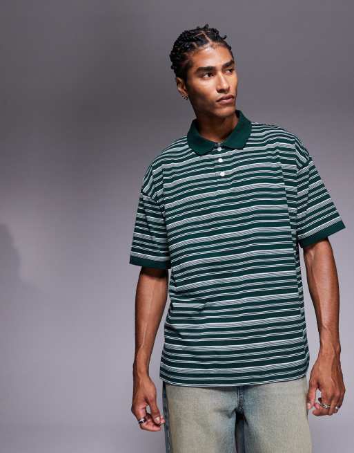 ASOS DESIGN – Zielona koszulka polo o pudełkowym kroju oversize w prążki
