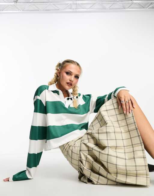 ASOS DESIGN – Zielona krótka koszula rugby z długimi rękawami w paski