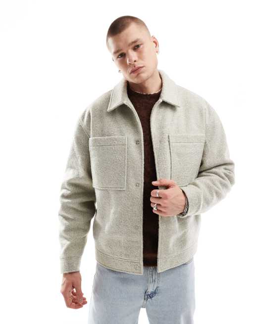 ASOS DESIGN – Zielona kurtka Harrington z imitacji wełny