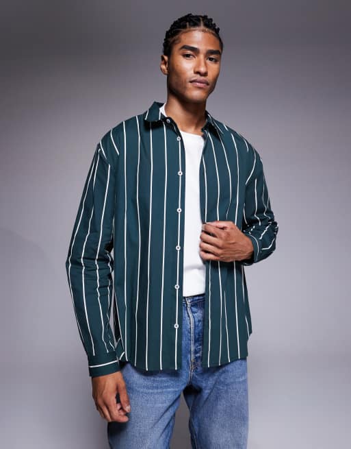 ASOS DESIGN – Zielona luźna koszula popelinowa w paski