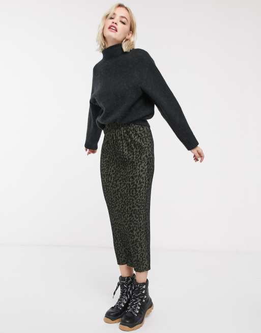 ASOS DESIGN — Zielona plisowana spódnica midi z nadrukiem w panterkę