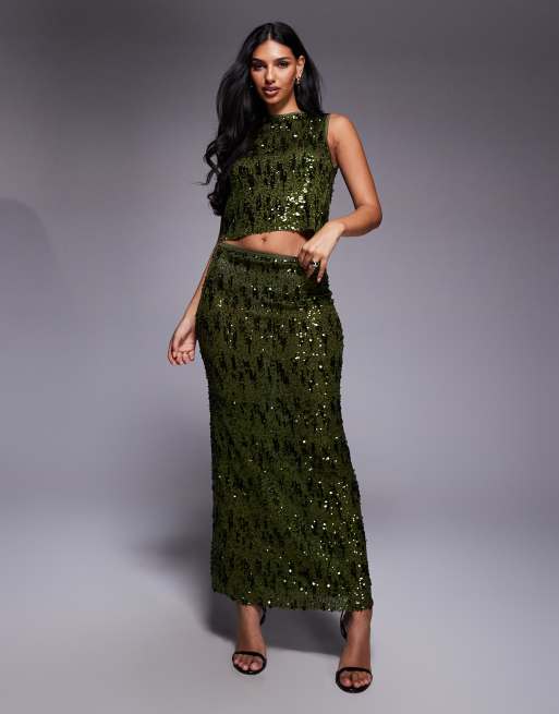 ASOS DESIGN – Zielona siateczkowa spódnica maxi z cekinami, część zestawu