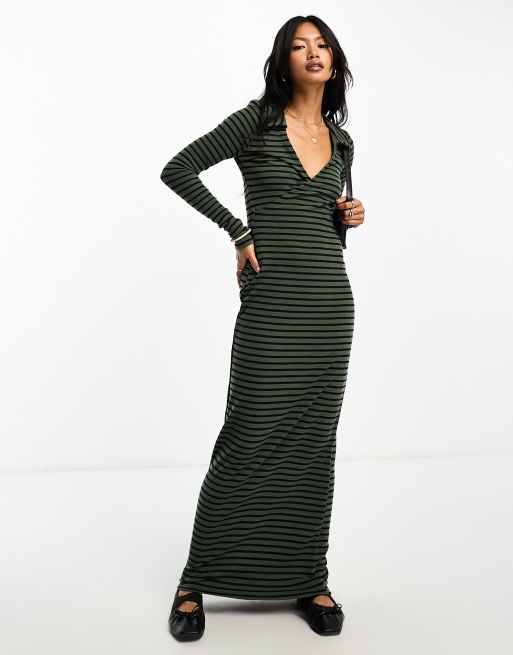 ASOS DESIGN – Zielona sukienka kopertowa maxi w paski