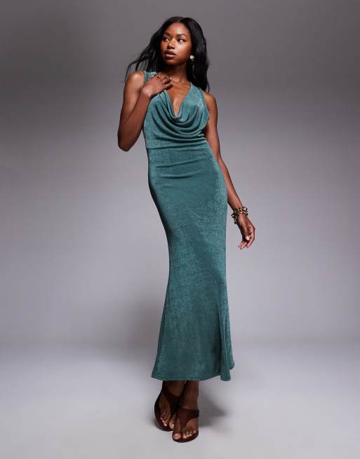 ASOS DESIGN – Zielona sukienka maxi bez rękawów z drapowanym dekoltem