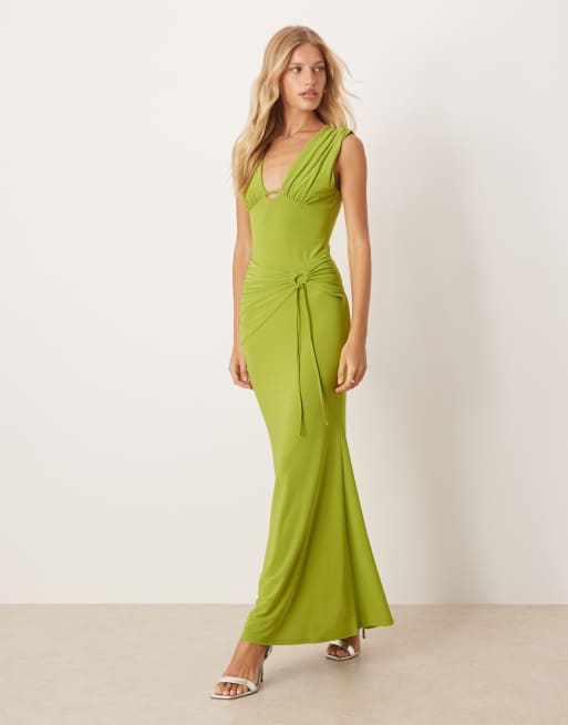 ASOS DESIGN – Zielona sukienka maxi z marszczoną górą, głębokim dekoltem i drapowaniem