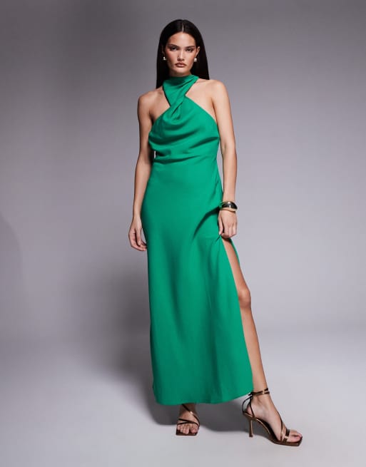 ASOS DESIGN – Zielona sukienka midi ze skręconym dekoltem i metalową ozdobą