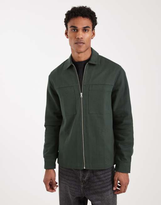 ASOS DESIGN – Zielona zapinana na zamek koszula wierzchnia z grubego diagonalu