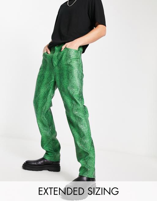 ASOS DESIGN – Zielone dad jeans z imitacji krokodylej skóry we wzór skóry węża