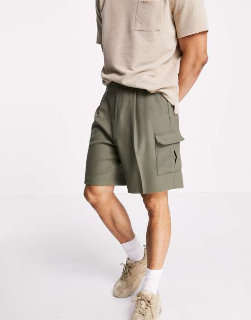 ASOS DESIGN – Zielone dresowe szorty z krepy z szerokimi nogawkami i kieszeniami